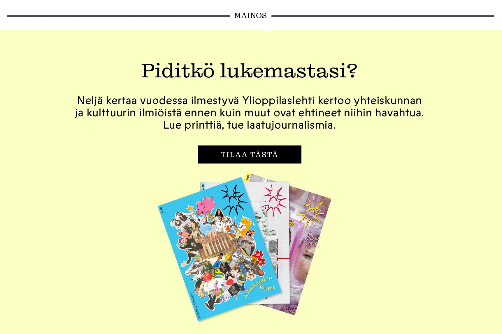 Oli vuosi 2013. Ylioppilaslehti oli juuri täyttänyt sata vuotta. Siis kokonaisen vuosisadan. Sen kunniaksi lehti oli tehnyt satavuotisjuhlanumeron. Sen piti olla ihan tavallinen päivä.